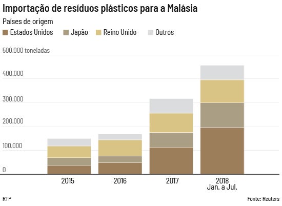 A Malásia importou, de dez países, quase meio milhão de toneladas entre janeiro e julho. As importações saltaram para 456 000 toneladas no primeiro semestre do ano, face as 316 600 toneladas durante todo o ano de 2017.