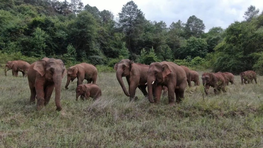 Manada de elefantes regressa ao seu habitat depois de meses a vaguear pela China