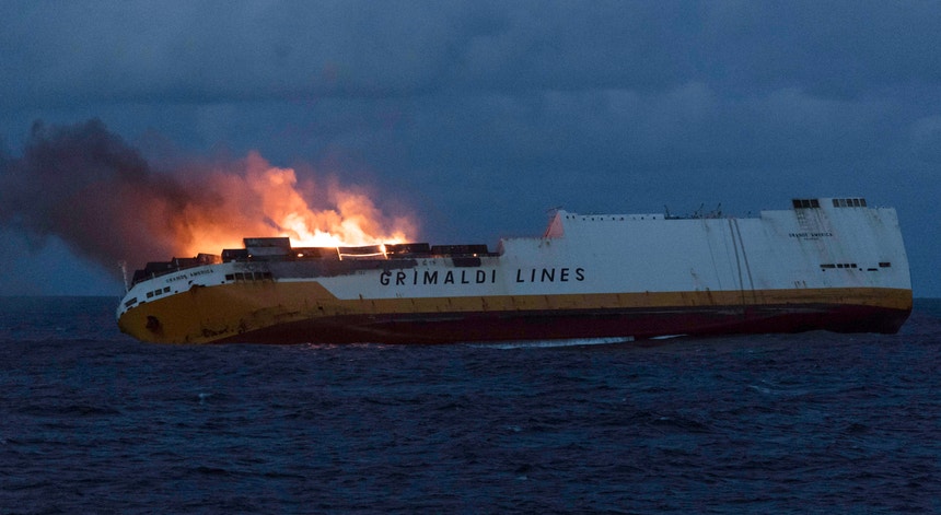 A bordo do Grande América seguiam 27 pessoas que foram retiradas na noite de domingo para segunda-feira.A embarcação pertence à empresa Grimaldi Group SPA e foi construída em 1997.