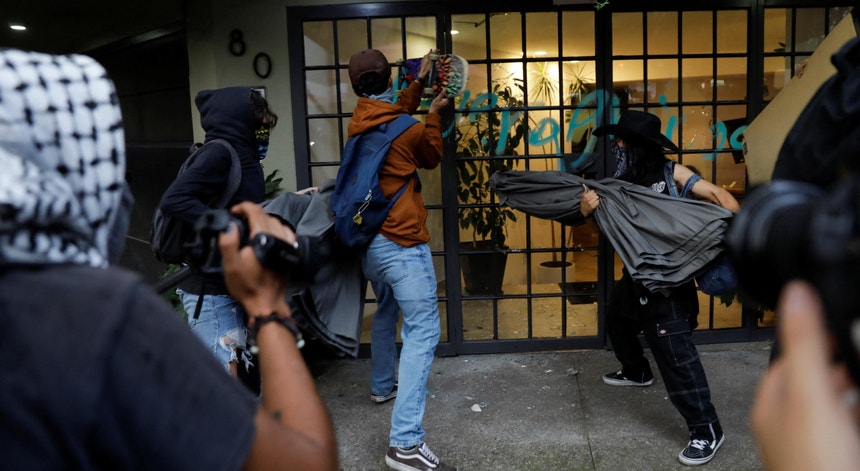 Os manifestantes mascarados partiram montras e saquearam estabelecimentos comerciais de luxo nas zonas turísticas de Condesa e Roma, na capital mexicana, e gritaram com os turistas que se encontravam na zona.