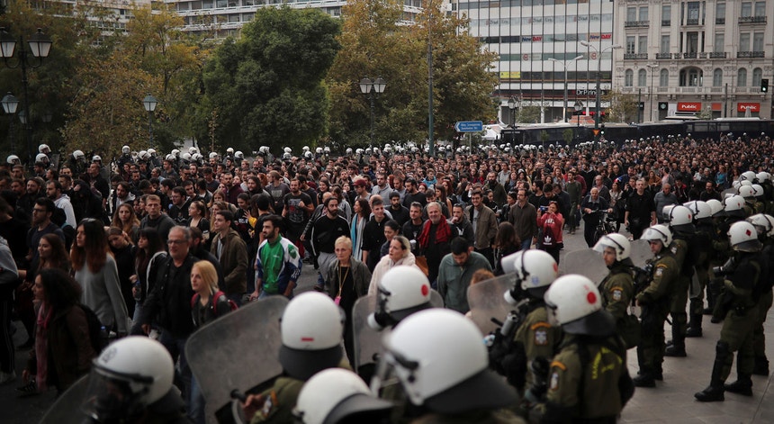 Na segunda-feira, cerca de 200 estudantes que protestavam na Universidade de Economia de Atenas foram cercados por polícias que usavam gás lacrimogéneo e duas pessoas foram presas.