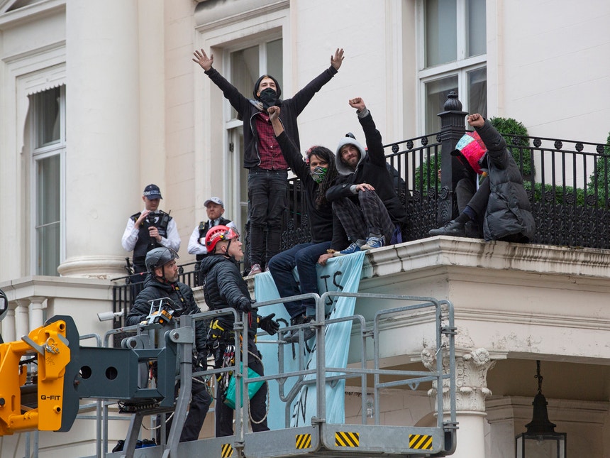 Um grupo de manifestantes invadiu e ocupou, na segunda-feira, a mansão de luxo do oligarca russo Oleg Deripask, em Londres. Pertencentes a um movimento anarquista, os ocupas penduraram uma bandeira ucraniana e cartazes contra Vladimir Putin e a invasão à Ucrânia. A polícia foi chamada ao local e acabou por deter quatro pessoas.