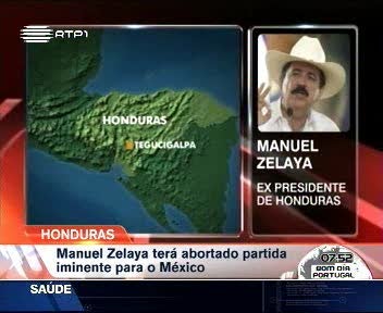 O Presidente deposto das Honduras e a sua família continuam refugiados na embaixada brasileira em Tegucigalpa depois de ter sido abortada, na última madrugada, a partida para o México. O Governo interino hondurenho tinha autorizado a partida de Zelaya com a condição de exilado político, o que impediria o seu regresso ao país para concorrer às eleições presidenciais, uma possibilidade rejeitada pelo ex-Presidente.
