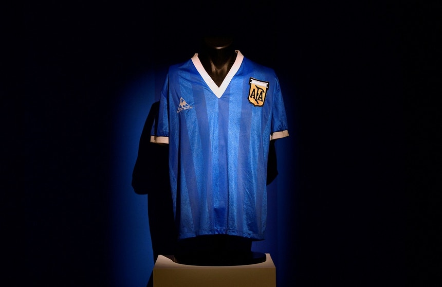 A camisola que Diego Armando Maradona utilizou nos quartos-de-final do Mundial de 1986 frente à Inglaterra foi vendida esta quarta-feira por um valor recorde. Em Londres, na Sotheby's, a camisola utilizada por Maradona na partida da famosa "mão de Deus" e do “golo do século” foi vendida por quase 8,5 milhões de euros.