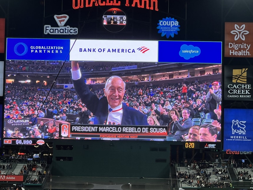 O presidente da Republica, na véspera de terminar a visita à Califórnia, foi a estrela da noite num jogo de basebol. Marcelo Rebelo de Sousa vestiu a camisola dos Giants, a equipa de São Francisco, e entrou em campo.