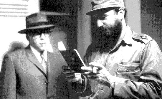 O “Che” (à esq.), com Fidel examinando o passaporte falso.