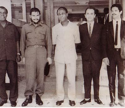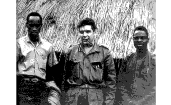 Trata, em primeiro lugar, de fazê-lo para África. No início do ano seguinte, envia uma carta a Fidel explicando a sua decisão. Com 120 militares cubanos, parte para o Congo, para combater ao lado do movimento dirigido desde o exílio por Cristophe Gbenye. Datam de então alguns dos seus contactos com movimentos de libertação das ex-colónias portuguesas.