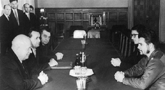 Entretanto, também no plano internacional o “Che” será durante algum tempo o rosto mais visível da revolução cubana. Intervém na ONU, para denunciar o imperialismo norte-americano. Visita a URSS por várias vezes e reúne-se com Kruchtchev. Visita a China e reúne-se com Mao Tse Tung. Na África negra será interlocutor do presidente ganês Kwame N’Krumah. No mundo árabe estende pontes para o dirigente argelino Ahmed Ben Bella e para o presidente egípcio Gamal Abdel Nasser. Na Índia, dialoga com Nehru.