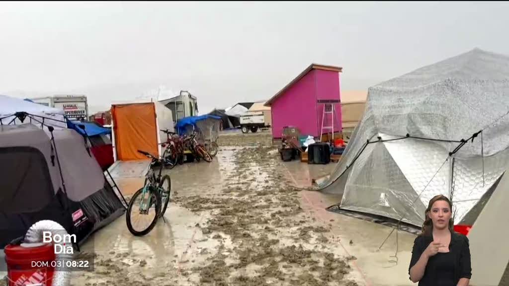 A chuva e e a lama deixaram 70 mil pessoas retidas no festival Burning Man, nos Estados Unidos. Normalmente, o cenário é de calor e muito pó.