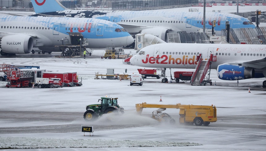 No sábado, o aeroporto de Manchester foi obrigado a encerrar as pistas devido a um forte nevão, o que afetou dezenas de voos.
