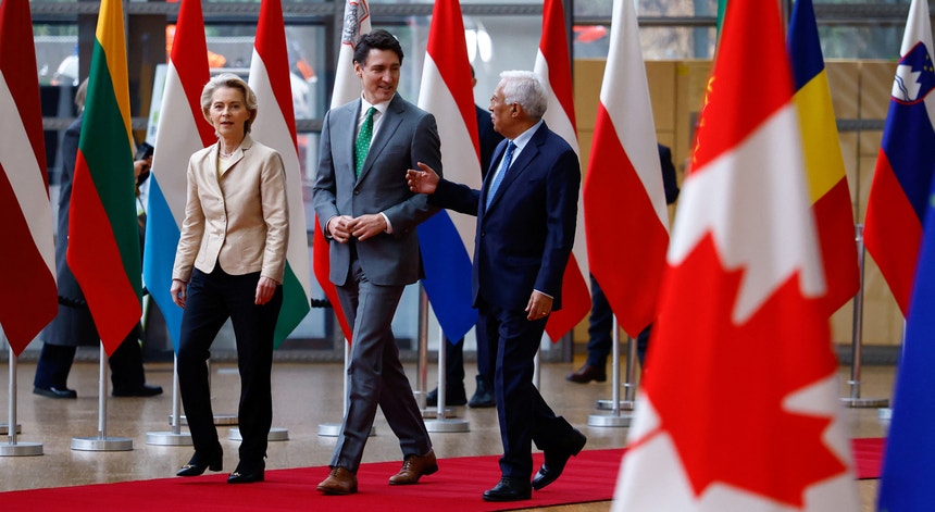 Os líderes europeus receberam em Bruxelas o primeiro-ministro canadiano Justin Trudeau, país encurralado pelas ameaças americanas.