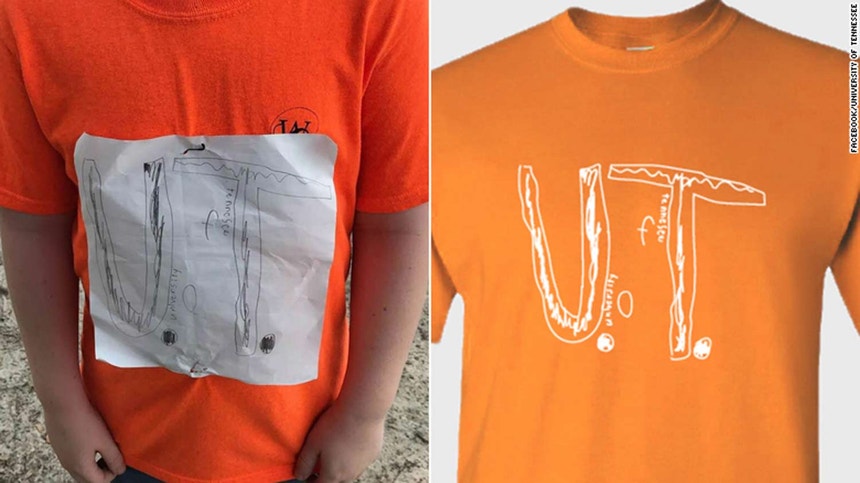 Menino alvo de bullying por usar t-shirt da Universidade do Tennessee que ele desenhou. A universidade transformou-a em t-shirt oficial