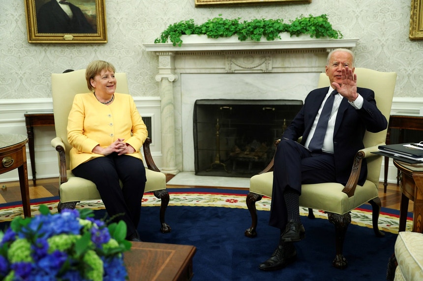 Merkel recebida por Biden e por ativistas pela livre produção de vacinas