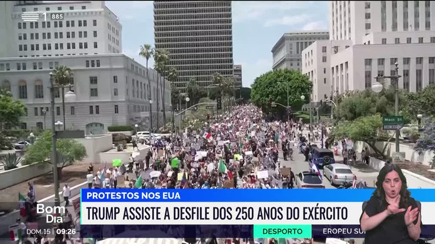 Estas manifestações decorreram à mesma hora em que Trump assistia à parada militar em Washington, que assinalou os 250 anos do exército norte-americano.