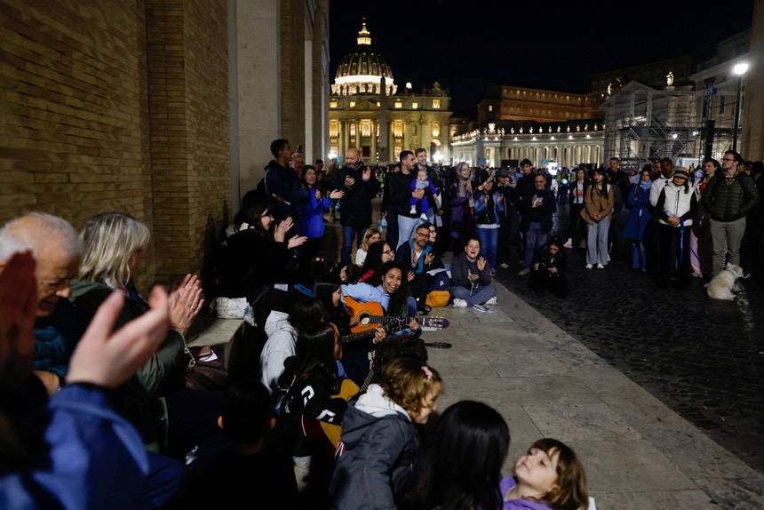 São milhares as pessoas que aguardam, em longas filas, para entrar na Basílica de São Pedro, no Vaticano.