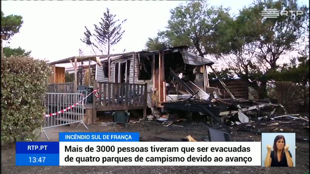 Mais de três mil pessoas foram retiradas de parques de campismo no sul de França devido a um violento incêndio. Os ventos fortes empurraram as chamas que destruíram 22 bungalows, espalhados por uma área de 150 hectares.