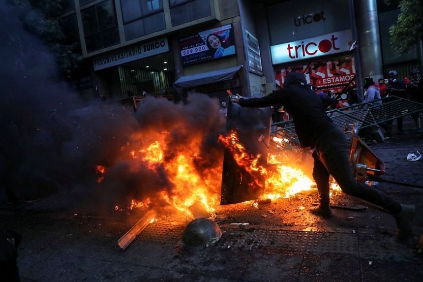 Sem líderes ou grupos organizados por detrás dos apelos à manifestação, a mobilização e violência recomeçaram nas ruas da capital, mas sem a afluência dos protestos do ano passado. Também se realizaram manifestações nas cidades de Concepción (sul), Antofagasta (norte) e Valparaiso (centro).