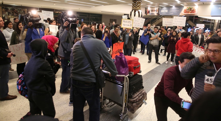 Os maiores aeroportos norte-americanos foram palco de ações de protesto de milhares de pessoas, depois de o Presidente dos Estados Unidos ter fechado as portas do país a oriundos de sete países de maioria muçulmana. Uma ordem executiva que já vedou fronteiras a detentores de passaportes válidos e até vistos de residência.