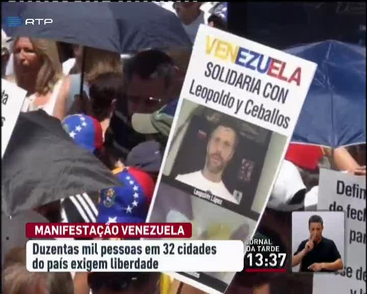 O povo venezuelano exige a libertação dos líderes da oposição que estão retidos. Mais de 200 mil pessoas saíram à rua para exigir o fim destas prisões. Só em Caracas, manifestaram-se mais de 50 mil pessoas. Os manifestantes acusam o Presidente Maduro de ter impedido, pela segunda vez em quatro anos, que dois antigos Presidentes latino-americanos visitassem o líder da oposição Leopoldo López.