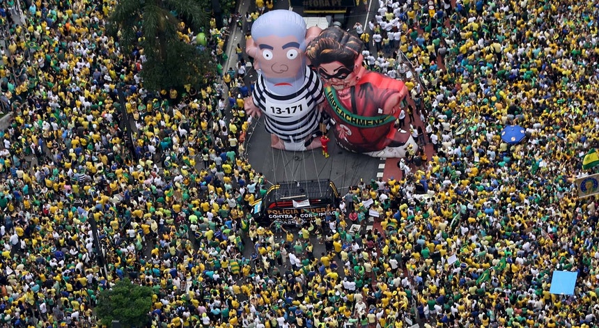 Milhares de brasileiros saíram à rua em manifestações por todo o país. O principal alvo foi a presidente brasileira, mas as suspeitas de corrupção que recaem sobre o antigo presidente Lula da Silva foram também um dos motivos das manifestações.