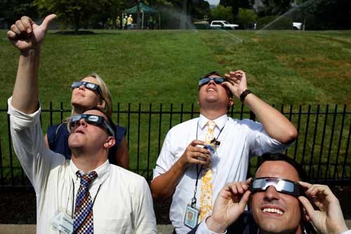 Mas numa faixa de 113 quilómetros de largura e quatro mil de comprimento, abrangendo 14 estados dos Estados Unidos da América, de costa a costa, milhões de pessoas, incluindo milhares de turistas, puderam disfrutar do espectáculo de ver o Sol ser totalmente tapado pela Lua, até ser visível apenas uma corona em torno de um disco negro.
