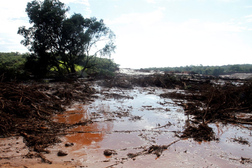 A lama proveniente da rutura da barragem varreu a comunidade local e parte do centro administrativo da empresa mineira Vale, destruindo o refeitório onde se encontrava uma parte dos funcionários.
