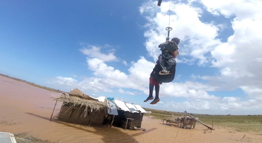 Um fuzileiro português resgatou uma jovem numa aldeia inundada em Moçambique. No rio Buzi, aparecem pequenas ilhas onde sobrevivem famílias ainda isoladas .