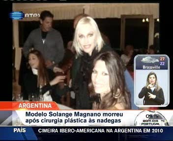 Morreu uma ex-miss Argentina, Solange Magnano, não resistiu a complicações após uma cirurgia plástica. A modelo, de 38 anos, sofreu uma embolia pulmonar devido a complicações durante uma gluteoplastia, uma cirurgia cosmética às nádegas. Segundo um médico do hospital, a modelo chegou ao hospital com deficiências respiratórias, situação que se agravou até sofrer a embolia.