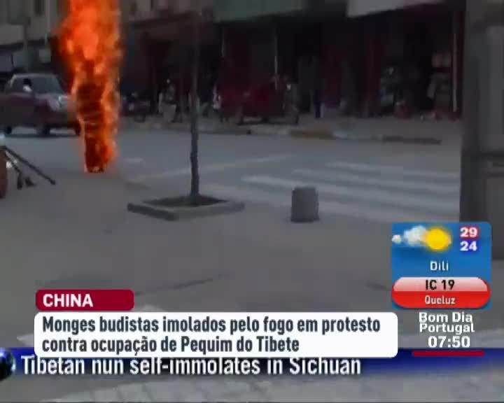 No Tibete, três monges e uma mulher imolaram-se em protesto contra a ocupação chinesa do território. Três não resistiram aos ferimentos causados pelas chamas. Só em novembro houve 22 casos de imolação, desde o inicio do ano morreram desta forma 85 monges tibetanos. De acordo a organização Free Tibet, estes actos são uma forma de resposta à propaganda feita pelas autoridades chinesas.