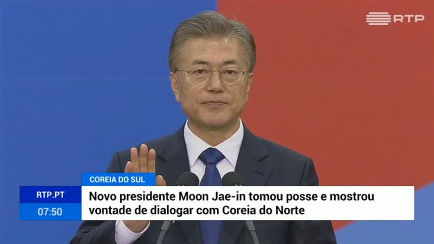 O novo presidente da Coreia do Sul já tomou posse. Depois de prestar juramento, o novo chefe de estado sul coreano disse que estava preparado para ir à Coreia do Norte,se houver condições.