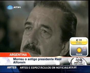 Alfonsín esteve no poder entre 1983 e 1989, lançando as bases para a democracia argentina. O primeiro Chefe de Estado eleito após a última ditadura militar continuava a ser figura mais influente de um partido social-democrata. Morreu com 82 anos, vítima de cancro.