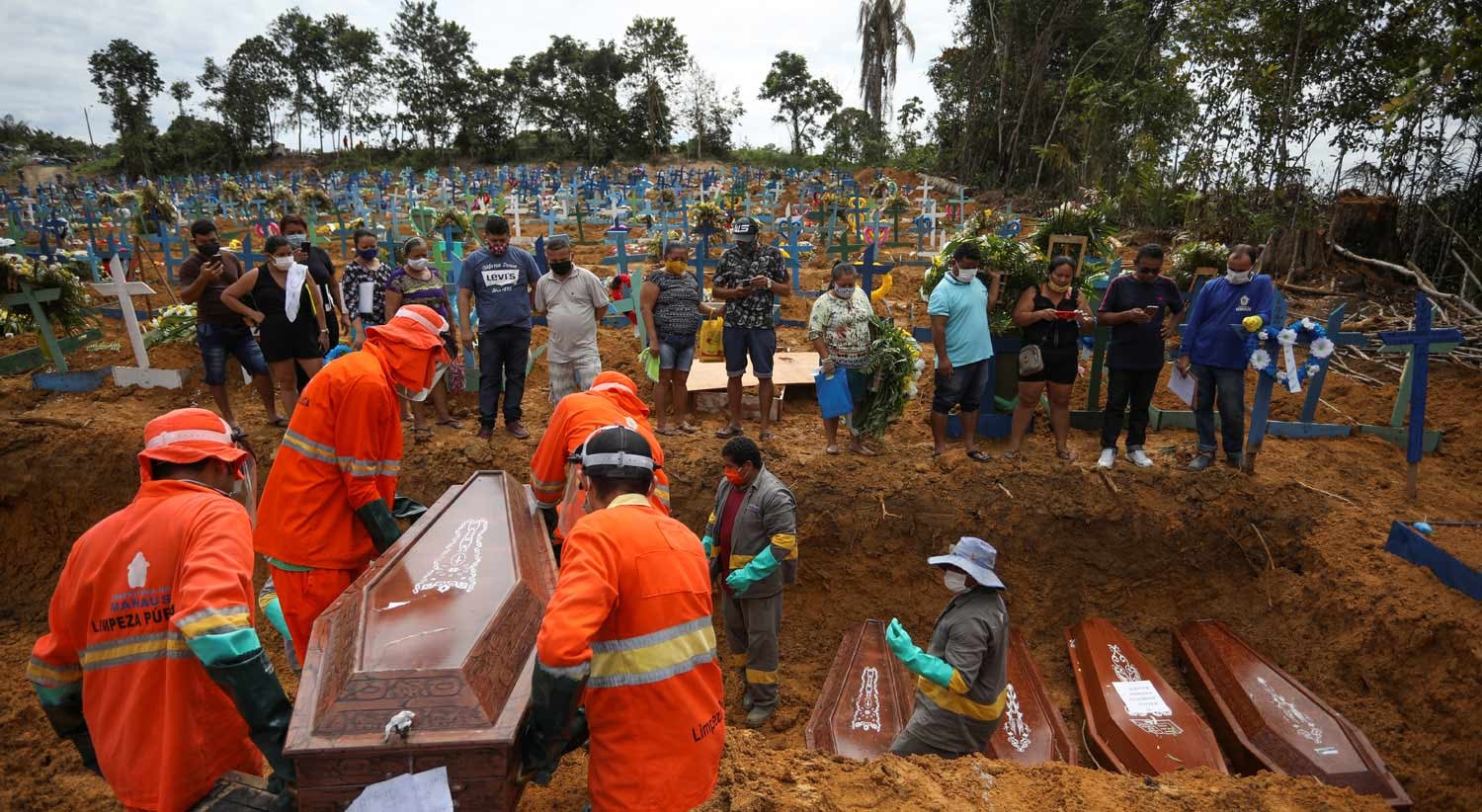 São tantas as mortes na maior cidade da Amazónia que no principal cemitério estão a ser enterrados de uma só vez cinco caixões na mesma sepultura. O cenário é de tal forma avassalador que em breve podem mesmo faltar caixões.