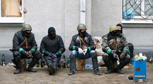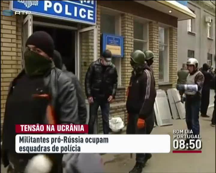 Num cenário em tudo análogo aos acontecimentos de março na Crimeia, homens armados e fardados, sem qualquer identificação de nacionalidade, assumiram parcialmente, nas últimas 24 horas, o controlo de Slaviansk, uma cidade maioritariamente russófona de quase 100 mil habitantes. Foram erguidas bandeiras russas. E em Donetsk perto de duas centenas de manifestantes pró-russos invadiram a sede da polícia sem encontrar resistência.