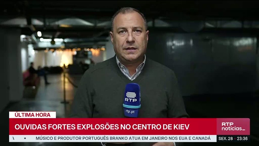 "Há explosões na capital e a defesa aérea está ativada. O ataque do inimigo continua", avisou Vitali Klitschko, enquanto fortes estrondos foram ouvidos e reportados por jornalistas da AFP no centro da capital.