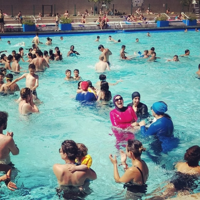No domingo passado, o grupo entrou na piscina Jean Bron, uma das várias piscinas municipais que proibiram o uso do burkini. Nos balneários, colocaram o vestuário – ficaram apenas visíveis o rosto, os pés e a mãos.
