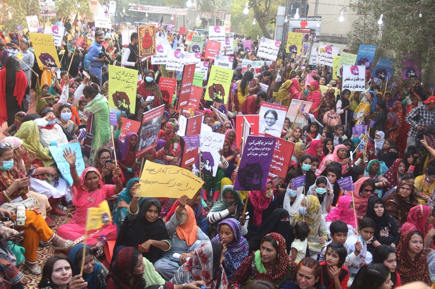 Em Islamabad, cerca de 500 pessoas bailaram, cantaram e desfilaram na capital e ecoaram "liberdade, liberdade", e "o meu corpo pertence-me" numa nova edição da Marcha Aurat (mulher em urdu), que desde 2018 desafia os setores mais conservadores do país.