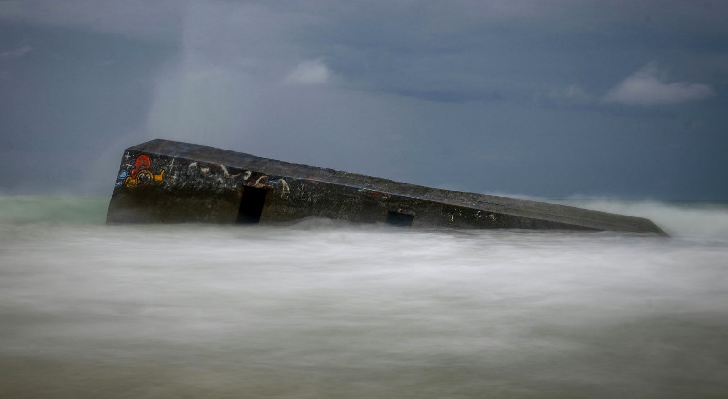Bunker submerso da Muralha do Atlântico na entrada da Baía de Arcachon, perto de Cap Ferret, sudoeste da FrançaOlivier Morin - AFP