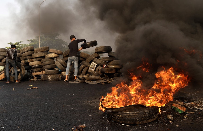 Na noite de terça-feira, os manifestantes acamparam numa das pontes que dá acesso às principais estadas da cidade, usando capacetes e máscaras de gás. Ergueram também barricadas feitas de pneus, madeira, sacos de areia e varas de bambu. Algumas das barricadas foram incendiadas, o que originou várias colunas de fumo negro.