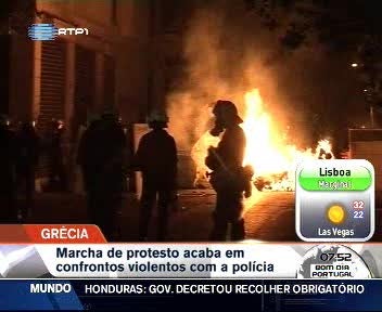 Os manifestantes, que incluiam vários grupos anarquistas, atiraram pedras e paus contra a polícia. Foram detidas 4 pessoas, suspeitas de atentados à bomba... Estes actos de violência surgem a duas semanas das eleições legislativas no país.