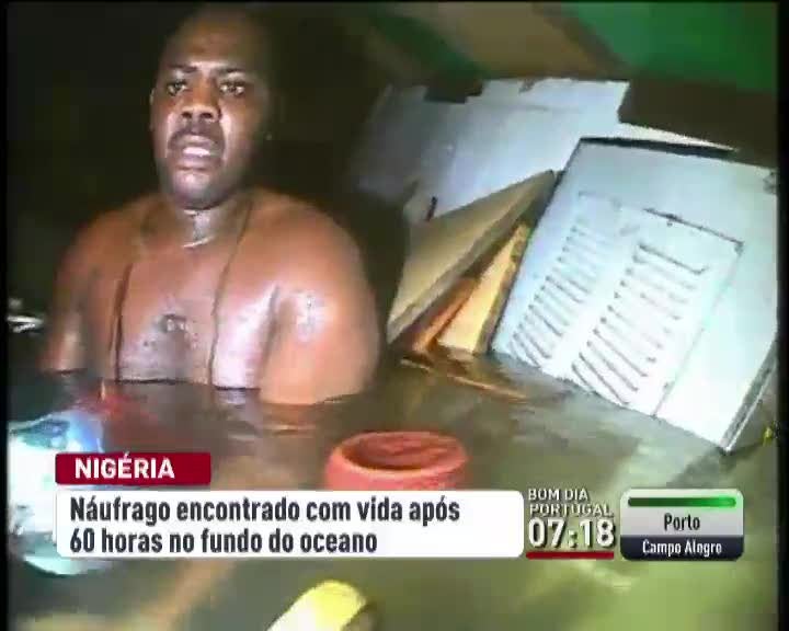 Um homem sobreviveu 60 horas no fundo do mar, dentro de um navio que naufragou perto da Nigéria. O naufrágio aconteceu há seis meses, mas só agora foi divulgado o vídeo do resgate. O cozinheiro do navio foi encontrado pelos mergulhadores encurralado numa casa de banho. Conseguiu sobreviver graças a uma bolsa de ar.