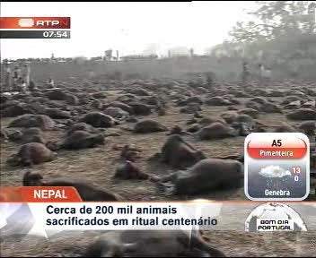 Cinco milhões de devotos hindus assistiram à morte de 15 mil búfalos de água. O ritual religioso centenário foi criticado por organizações de defesa dos animais de todo o Mundo, mas o Governo diz que faz parte da tradição hindú.