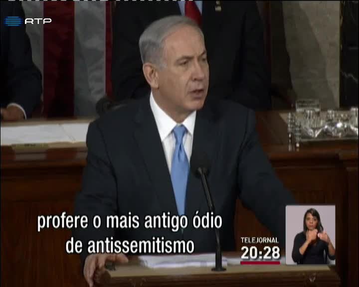 O primeiro-ministro de Israel afirmou hoje, perante o Congresso dos Estados Unidos, que o acordo que a Administração Obama está a preparar com Teerão "não bloqueia o caminho do Irão" para o desenvolvimento de armas atómicas, antes "abre caminho" às bombas. Para o líder israelita, o acordo que está a ser negociado, e que deverá estar pronto até finais de março, prevê "concessões" que deixariam o Irão com um "vasto" programa nuclear.