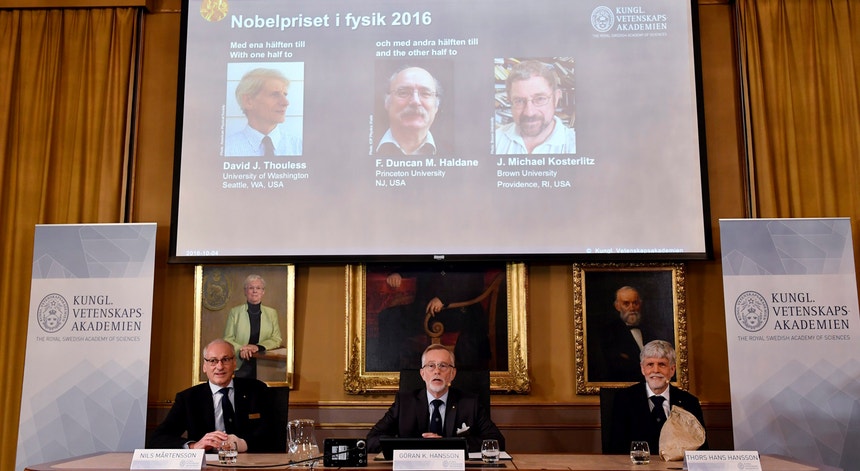 A Academia Sueca decidiu premiar três físicos “por descobertas teóricas sobre transições de fase topológicas e fases topológicas da matéria". Os três cientistas distinguidos são britânicos a trabalhar nos Estados Unidos.