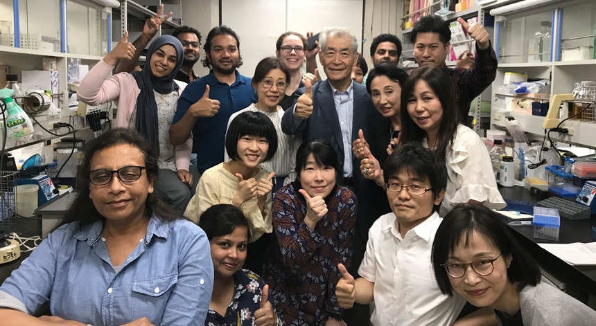 Equipa de Tasuku Honjo logo que foi anunciado o prémio Nobel da Medicina Twitter