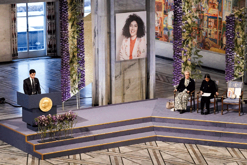 "Num mundo em que governos autoritários procuram dotar-se de armas nucleares para garantir a sua sobrevivência, em que as invasões de um país por outro se tornam comuns e em que instituições internacionais como as Nações Unidas perdem progressivamente a sua influência, a tentação dos países de se dotarem de armas nucleares torna-se cada vez mais forte", lamentou Narges Mohammadi.