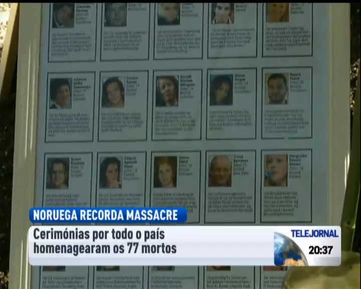 A Noruega homenageou hoje as 77 vítimas dos atentados que aconteceram há um ano. A 22 de julho do ano passado, o extremista de direita, Anders Breivik, colocou primeiro uma bomba com cerca de uma tonelada perto da sede do governo em Oslo. 8 pessoas morreram. Pouco depois, disfarçado de polícia, Breivik dirigiu-se para a ilha de Utoeya, onde abateu a tiro 69 pessoas, na maioria jovens. O autor do massacre deverá conhecer a sentença no próximo mês.