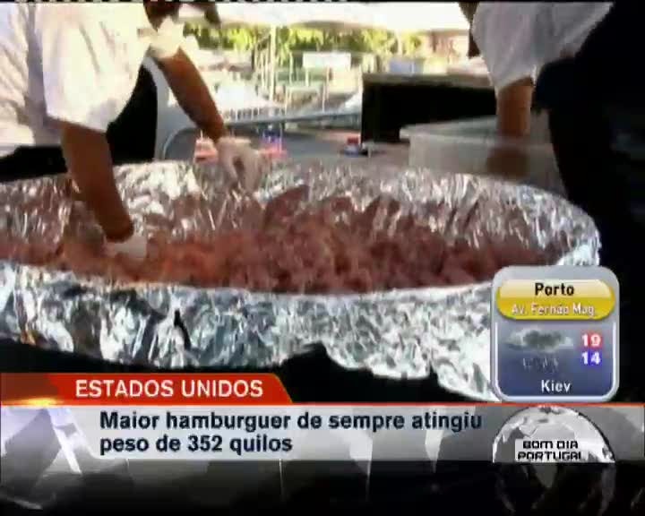 Nos Estados Unidos foi concebido o maior hambúrguer de sempre. O hambúrguer pesa 352 quilos. O anterior hambúrguer mais pesado tinha menos 85 quilos.