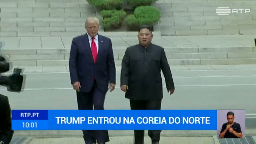 Donald Trump e Kim Jong-un cumprimentaram-se junto à fronteira entre a Coreia do Norte e a Coreia do Sul. Depois de umas curtas palavras Donald Trump seguiu ao lado do Kim Jon-un para a Coreira do Norte.