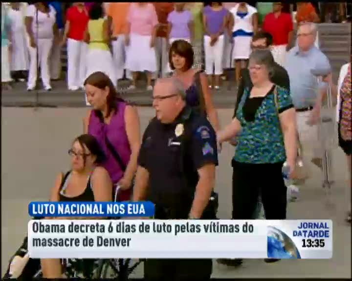 O Presidente dos Estados Unidos decretou seis dias de luto nacional em memória das vítimas do tiroteio de Denver, no Colorado. Barack Obama visitou o local, onde transmitiu uma palavra de apoio aos familiares dos que foram mortos na estreia do novo filme de Batman. O autor dos disparos, que foi capturado logo após o incidente, vai ser agora presente a tribunal.
