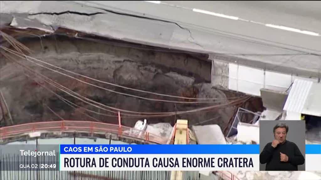 Em São Paulo, a rotura de uma conduta de esgoto durante as obras de uma nova linha do metro causou uma cratera gigante. O acidente provocou o caos numa das principais vias da cidade.